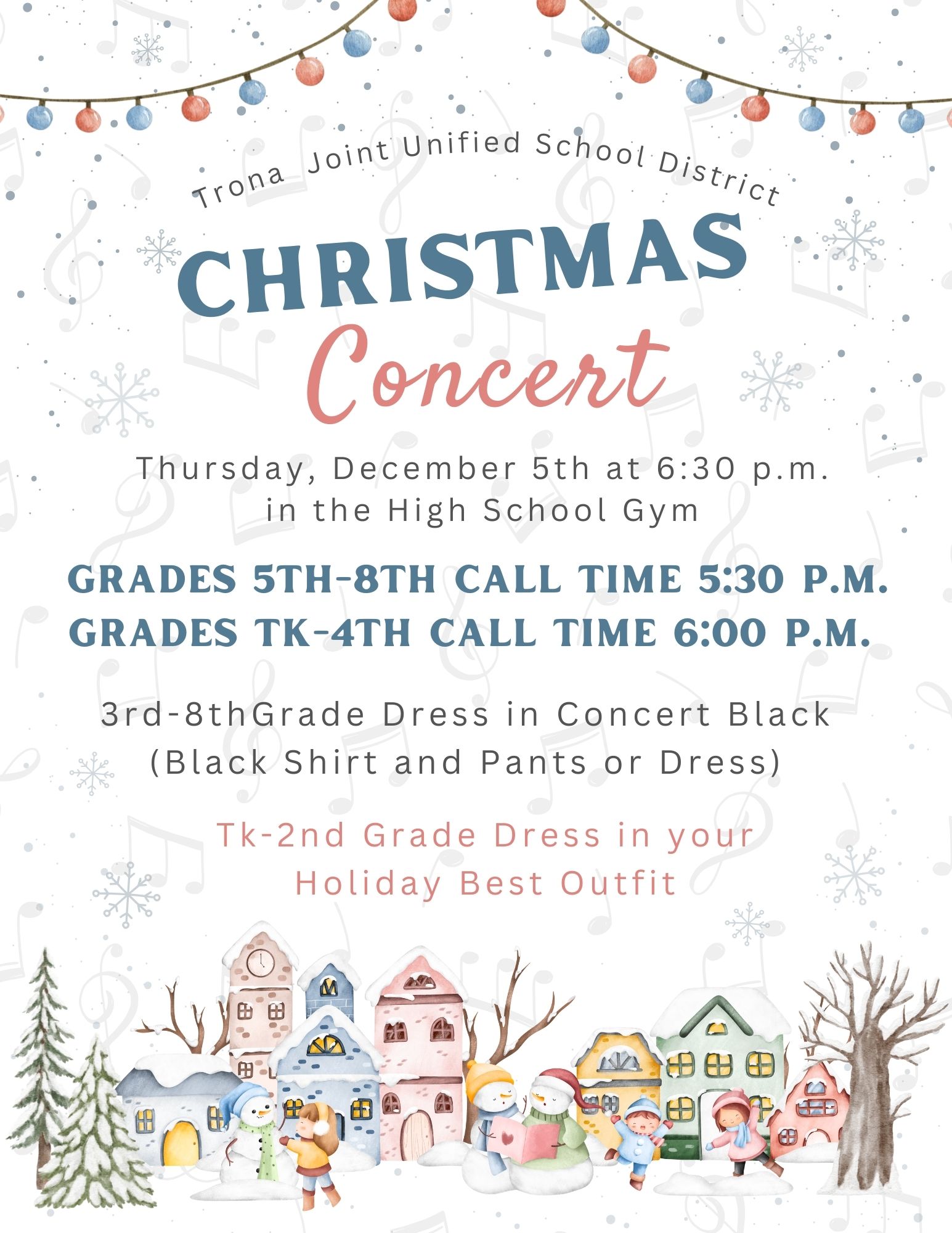 Christmas Concert Attire and Call Times
